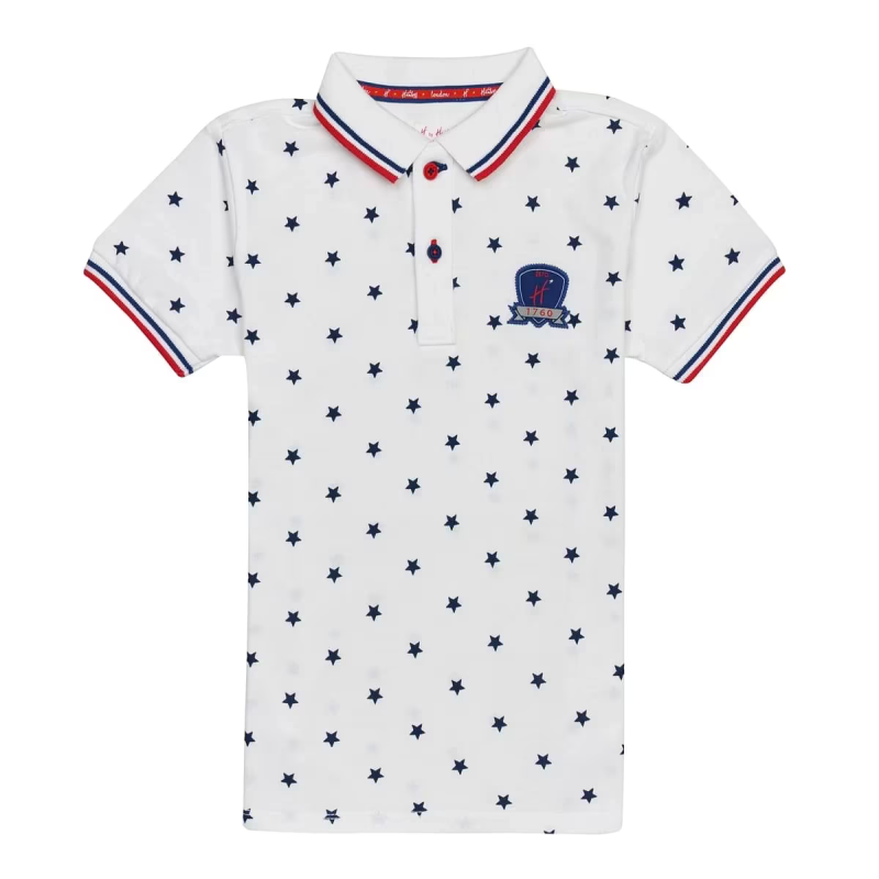 H by Hamleys Boys Short Sleeves Polo T-Shirt All Over Star Print-White Multi