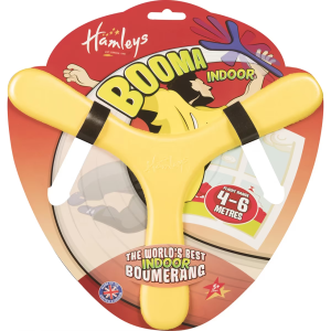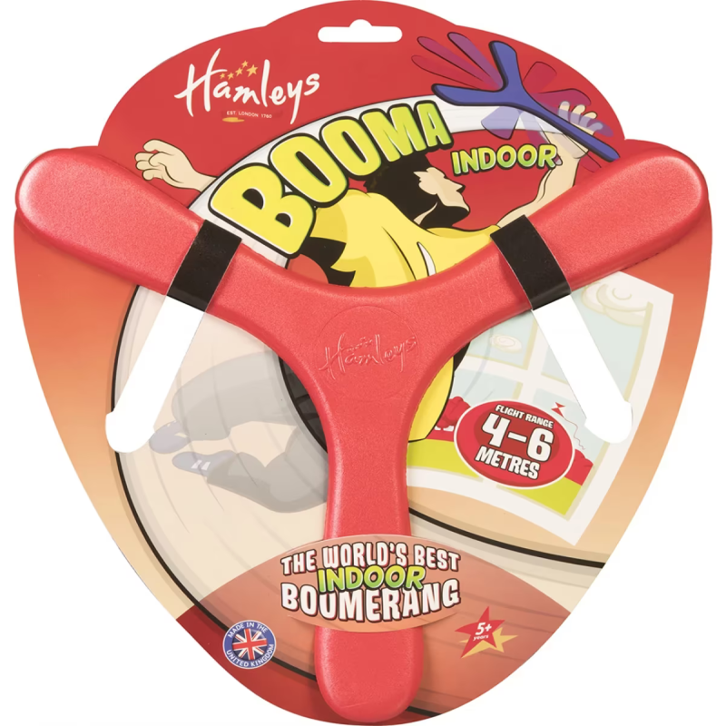 The Hamleys Booma Boomerang is an exciting throwing toy that combines fun and skill development for children aged 5 and above. Designed with beginners and young throwers in mind, this boomerang offers a great introduction to the art of boomerang throwing. With its unique spinning star design, the Booma Boomerang stands out from the crowd. The vibrant red color adds to its appeal, making it visually striking and easy to spot in flight. Whether it's a casual playtime activity or a friendly competition with friends, this boomerang is sure to bring hours of entertainment. One of the most impressive features of the Booma Boomerang is its ability to return when thrown correctly. As kids master the throwing technique, they can experience the thrill of seeing the boomerang come back to them. This not only adds an element of challenge but also encourages perseverance and skill improvement. Apart from being loads of fun, the Booma Boomerang also offers educational benefits. Throwing a boomerang requires hand-eye coordination, concentration, and precision. As children practice and refine their throwing skills, they develop better control over their movements and improve their motor skills. The Booma Boomerang is made from durable materials to withstand outdoor play and ensure long-lasting enjoyment. It is lightweight and designed to be safe for kids to handle. However, adult supervision is recommended, especially during the initial stages of learning to throw the boomerang. Overall, the Hamleys Booma Boomerang is an excellent choice for young throwers and beginners looking to explore the fascinating world of boomerang throwing. With its spinning star design, vibrant red color, and the ability to return when thrown correctly, this boomerang promises endless fun and skill development for kids aged 5 and above.