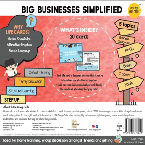 The businesses of hotels, FMCG, Banks and E-Commerce are very simply explained with everyday examples. Each life card is designed in a way that it can be internalized one at a time or together. Child can read them individually or with family; the cards will stimulate the grey cells.